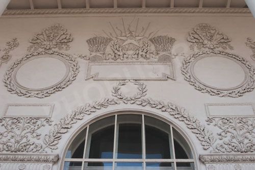 ВДНХ 18а Серп-молот украшение стены | ВДНХ 19 Советские кариатиды | ВДНХ 21 Франтон герб-знамена | ВДНХ 22 обрамление колоны | ВДНХ 23 п-н Украина скульптурная группа |